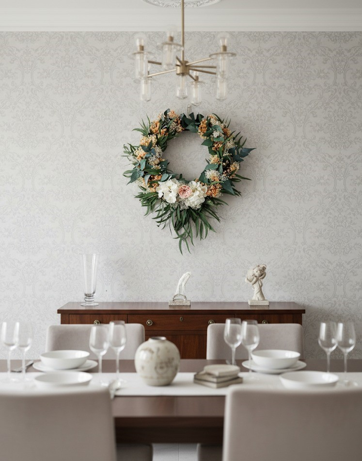 Este perfecta pentru usa de la intrare, dar **doar la interior** (de exemplu, pe interiorul usii sau intr-un hol de bloc protejat). Nu trebuie expusa la ploaie, soare direct sau inghet. Este ideala si ca decor de perete sau centru de masa.
