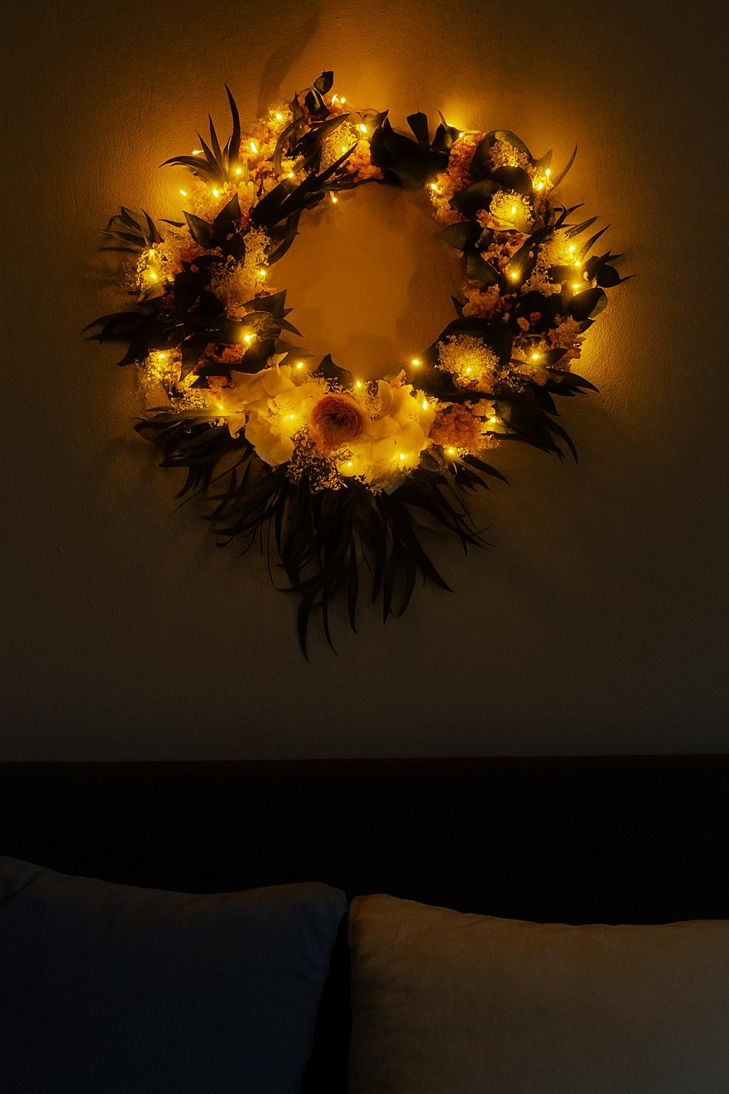 La cerere, coronita poate fi accesorizata cu un fir subtire de luminite LED (pe baterii) pentru a crea o atmosfera magica. Va rugam sa specificati acest lucru la plasarea comenzii (ledurile nu sunt incluse in pret).