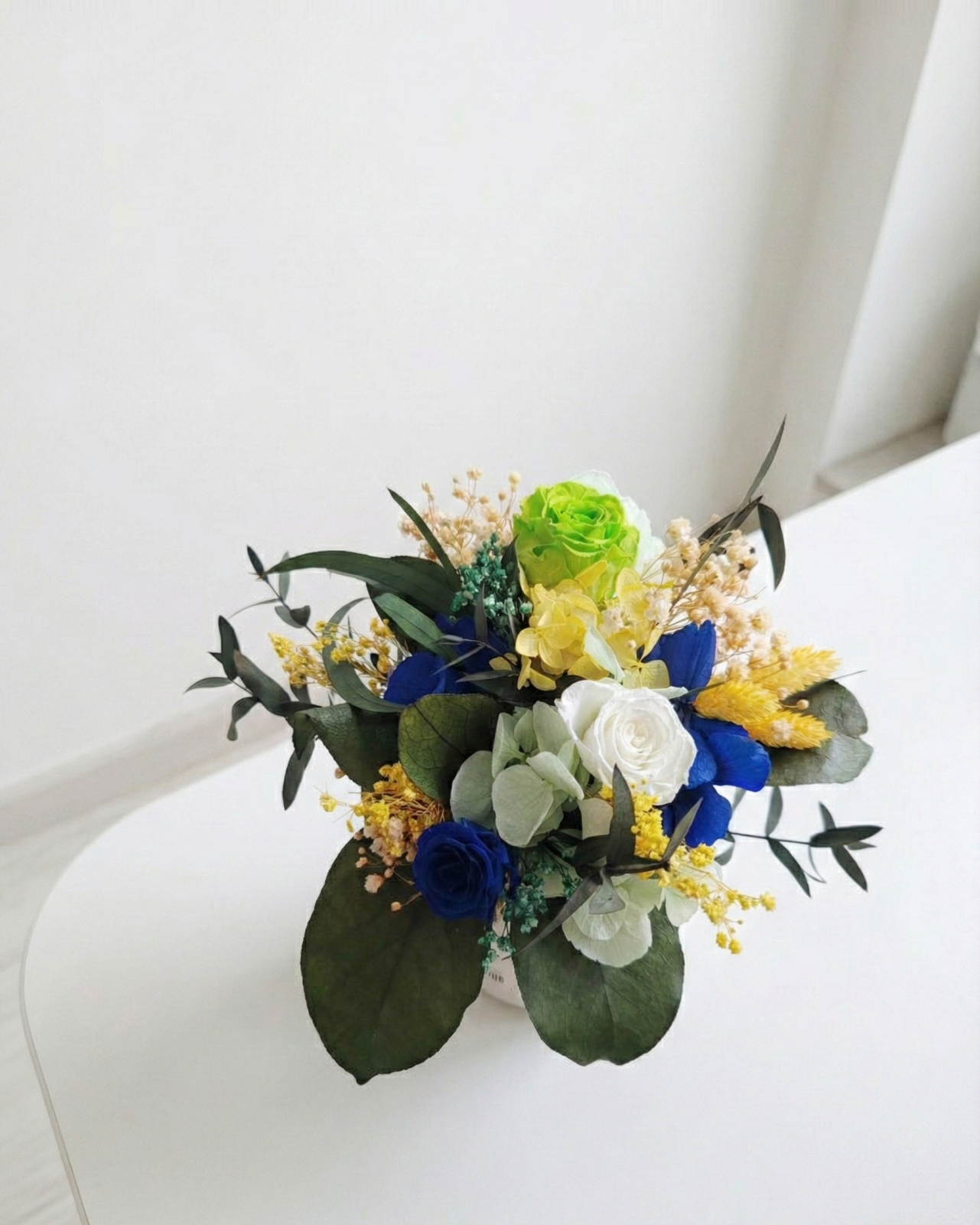 Intretinut corespunzator (doar la interior, ferit de soare direct si apa), aranjamentul isi pastreaza culorile vii si aspectul proaspat timp de cativa ani.