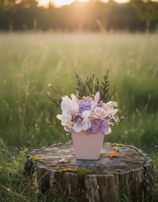Toate aranjamentele noastre, in special cele cu licheni stabilizati si flori uscate sau criogenate, sunt create sa reziste ani de zile fara a necesita intretinere speciala (fara apa). Sunt amintiri de lunga durata.