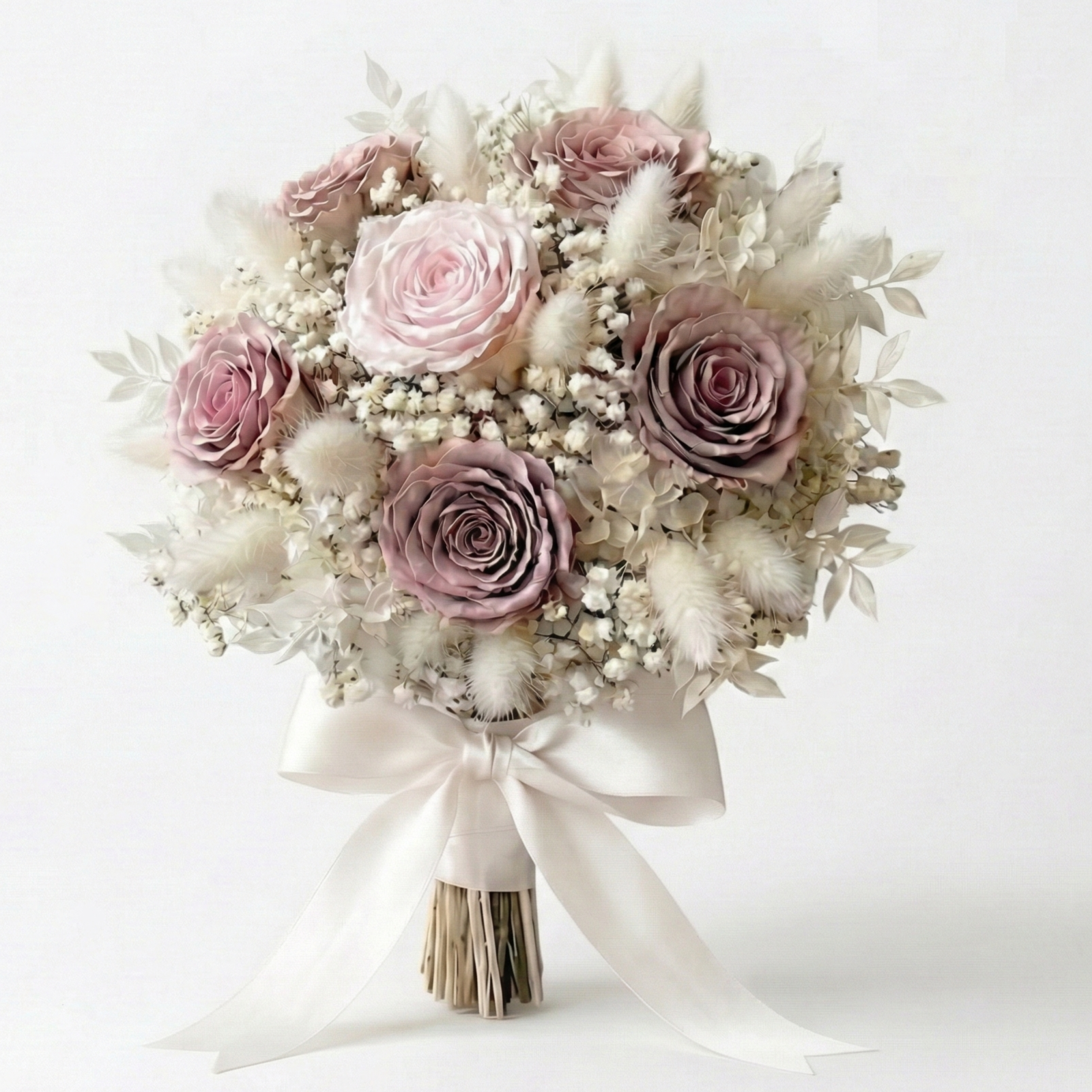 Tip Produs: Buchet mireasă/nașă din flori conservate, stil Luxury Boho.