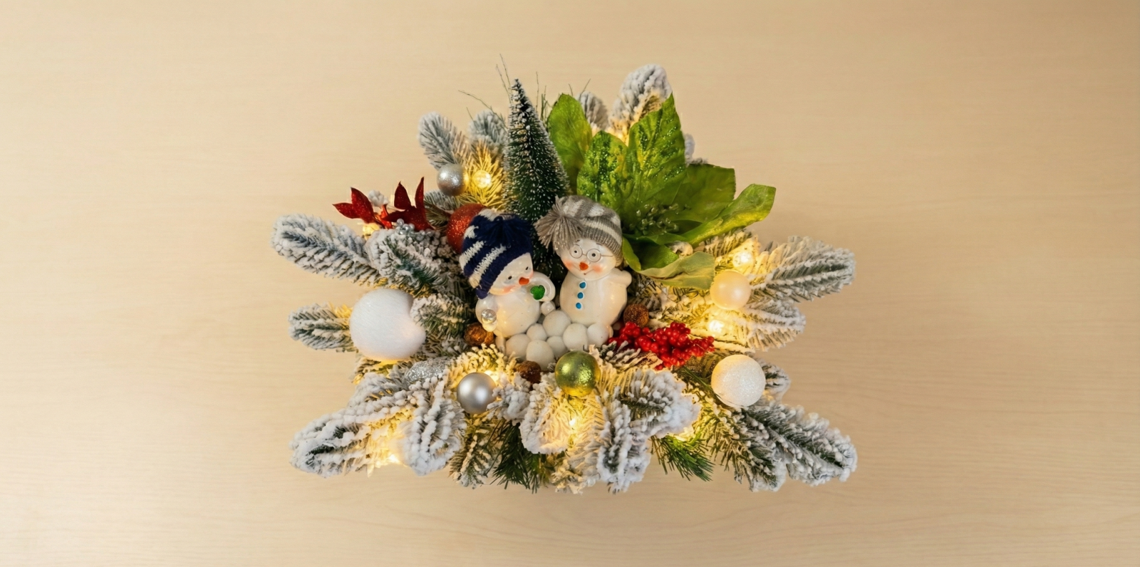 Instalatia functioneaza pe baterii (incluse), ceea ce inseamna ca puteti aseza aranjamentul oriunde in casa, fara sa depindeti de o priza si fara fire inestetice pe masa.