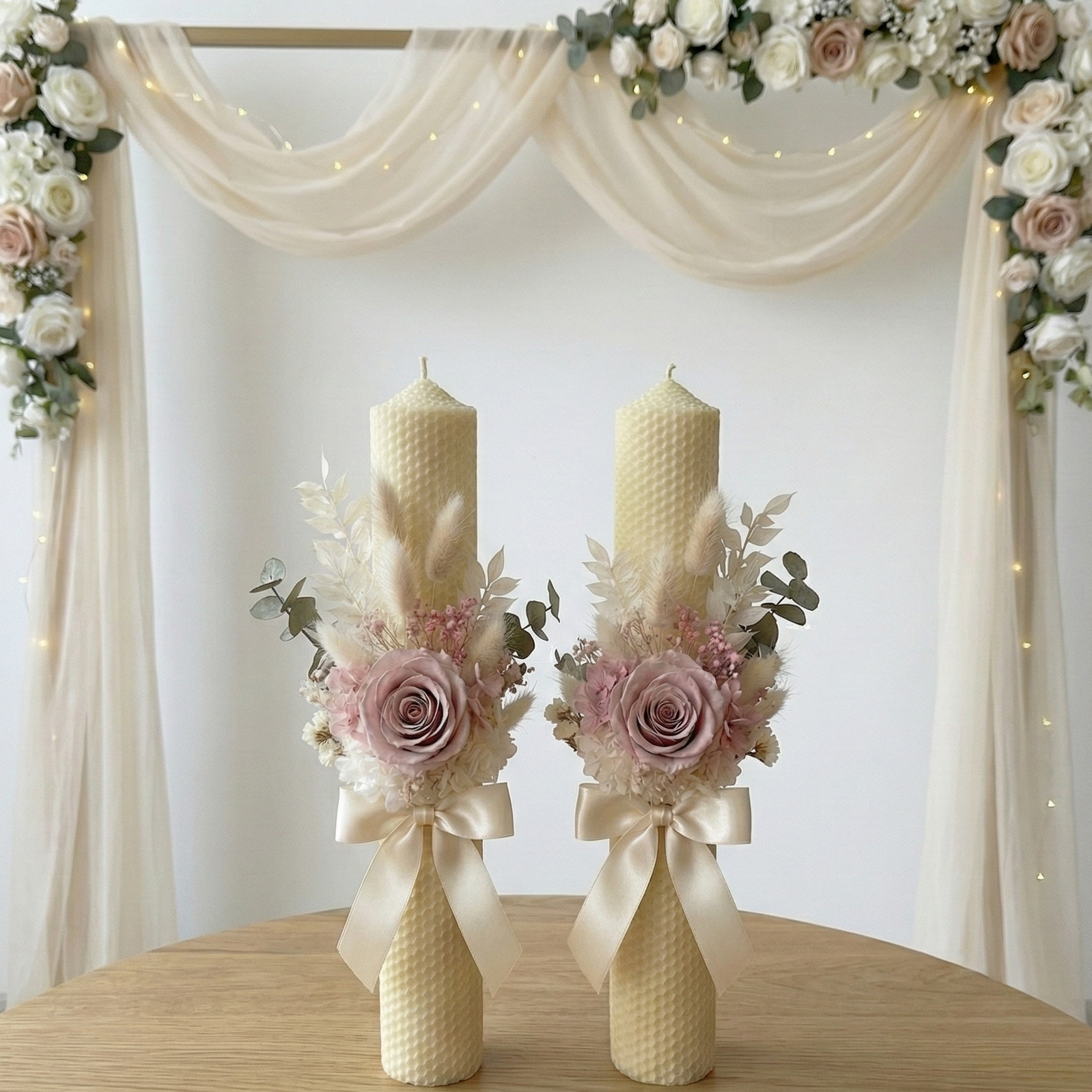 Putem adapta atât culoarea lumânării, cât și compoziția florală (plante și flori criogenate) în funcție de preferințele dumneavoastră. Contactați-ne telefonic sau pe WhatsApp pentru o ofertă personalizată.