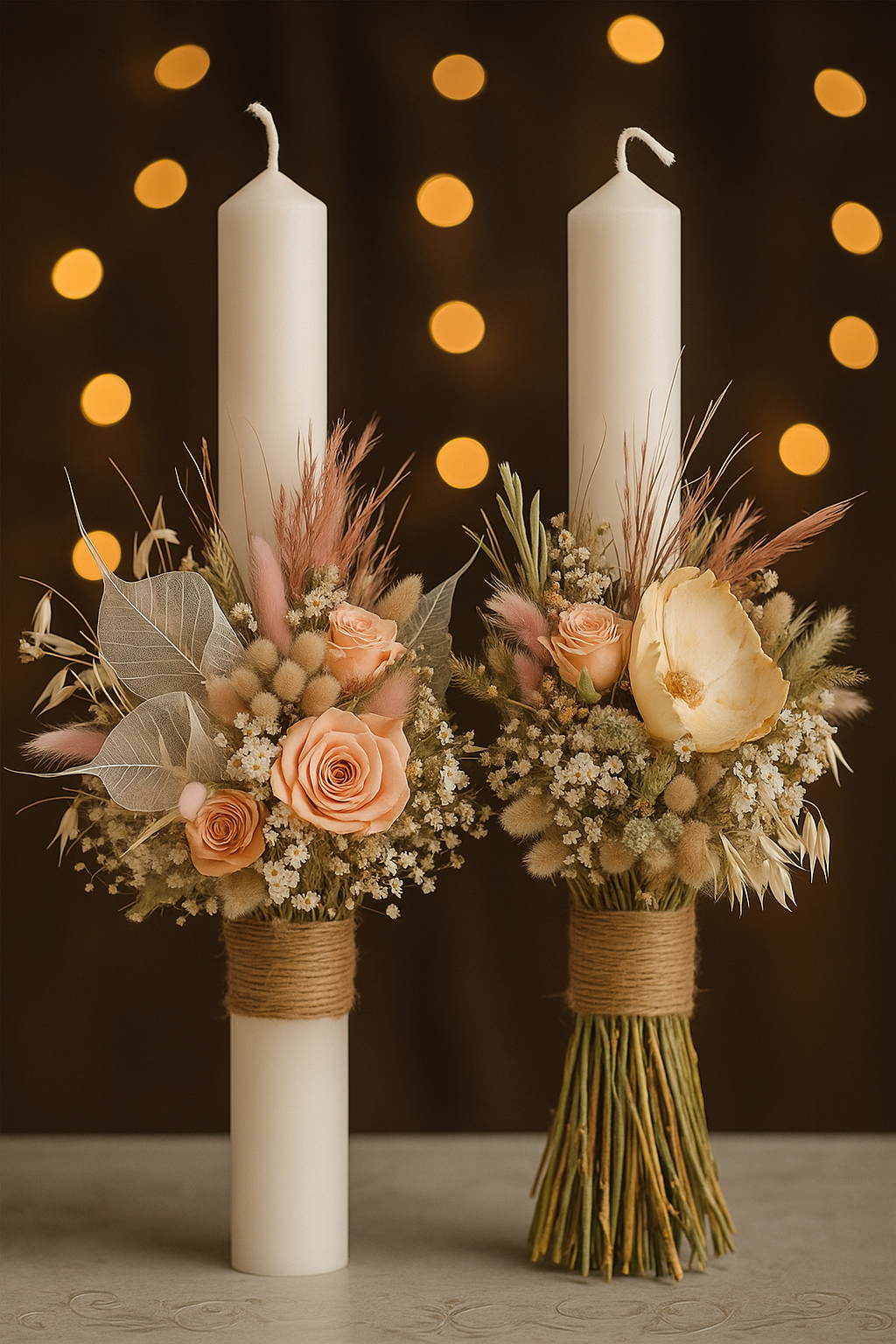 Ziua nuntii este o promisiune scrisa in emotii si celebrata prin detalii. Setul nostru de lumanari pentru cununie, cu un design boho-chic rafinat, este creat pentru a fi mai mult decat un accesoriu – este o amintire pretioasa care va pastra vie caldura momentului.